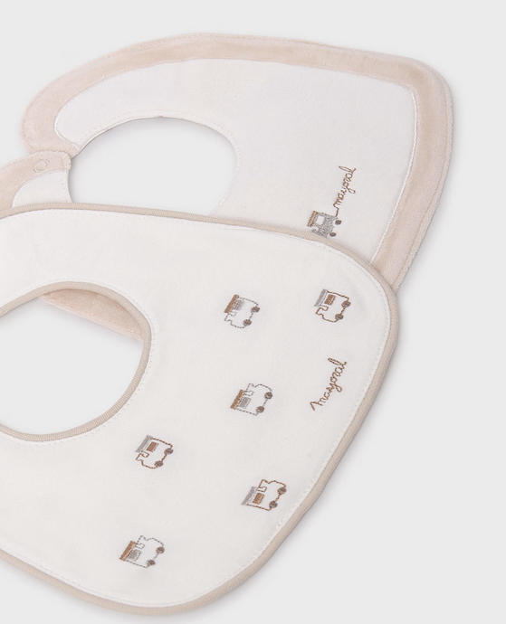 9950 Baby Boys Waterproof Embroidered Velour 2PC Snap Bib Set - Neutral Tan Milk Train