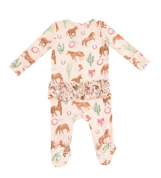Angel Dear Bamboo 2 Way Zippered RUFFLED Footie - Western Horses Pink