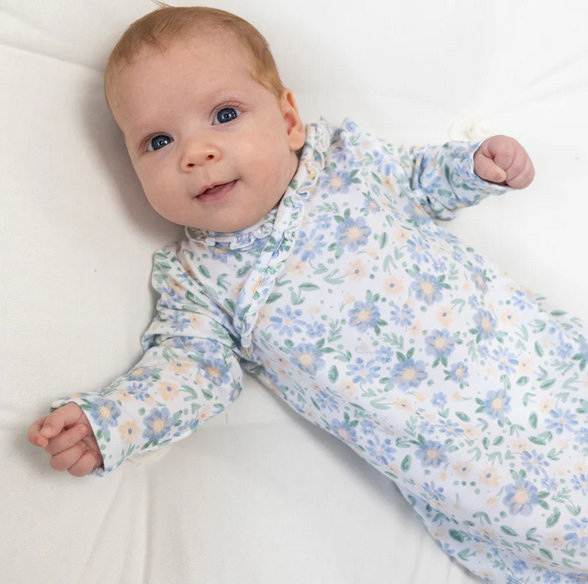 Angel Dear Bamboo L/S Kimono Elastic Opening Sleep Gown, Baby Veronica Blue Floral