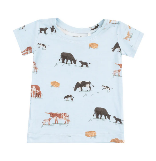 Angel Dear Bamboo S/S Short PJ Lounge Set - Cow Families Blue