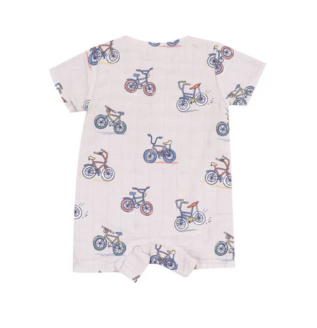 Angel Dear Muslin Short Sleeve Henley Shortall Romper - UNISEX Bikes