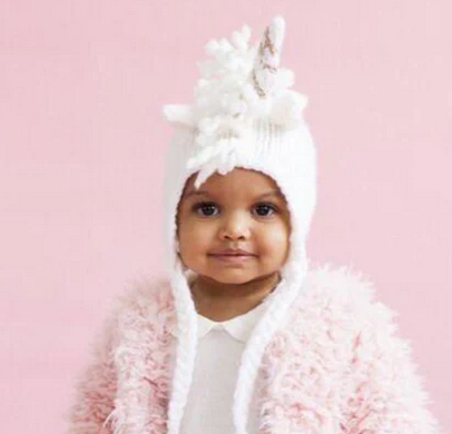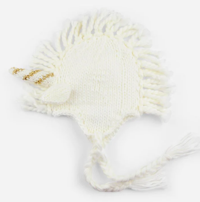 Blueberry Hill Knit Unicorn Hat, White/Gold