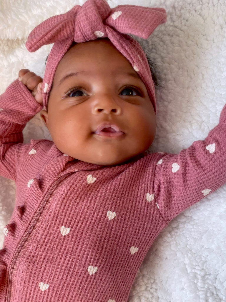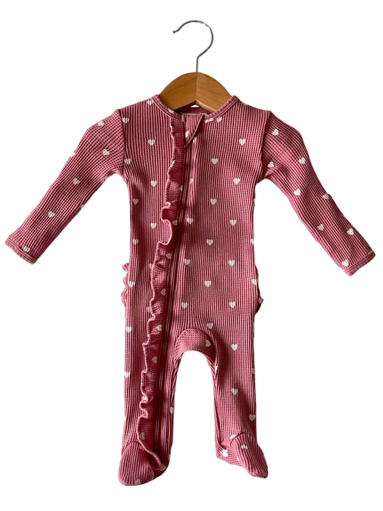 SpearmintLOVE Organic Waffle Ruffle Zip Footie, Mauve Heart