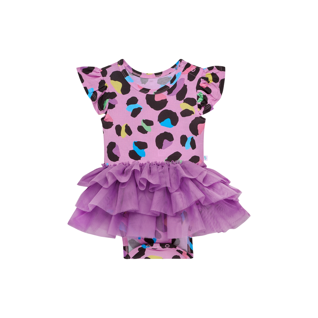 Posh Peanut Bamboo Capsleeve Tulle Skirt Bodysuit Dress - Electric Leopard