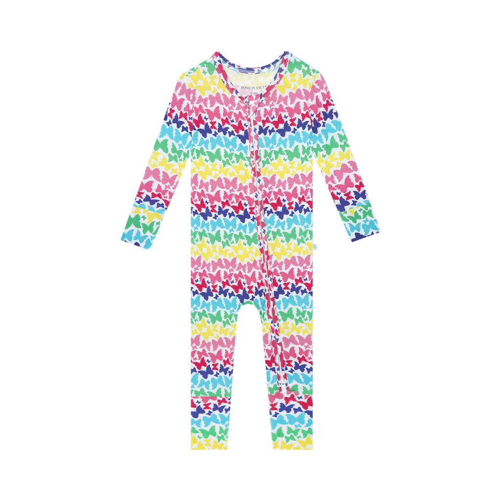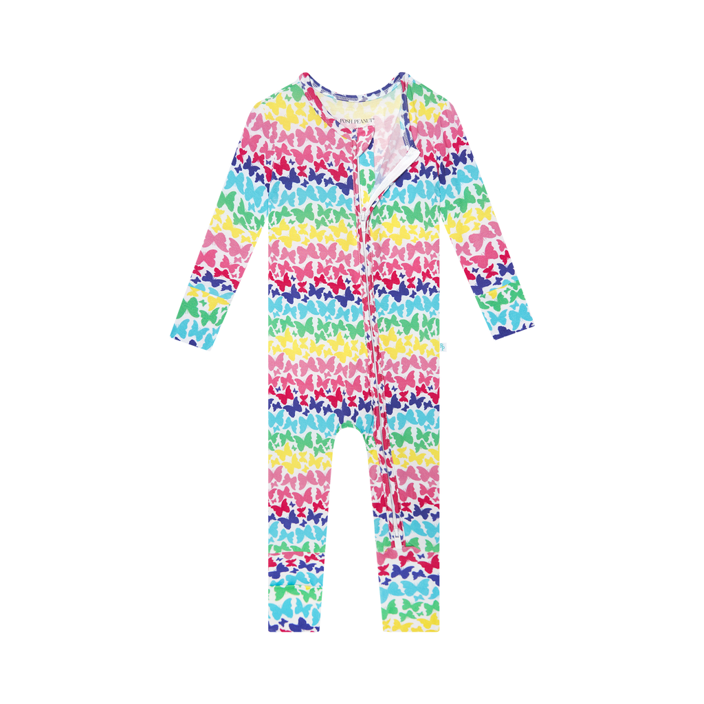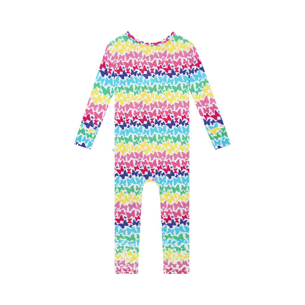 Posh Peanut Bamboo Convertible Zippered Onepiece Romper - Rainbow Butterfly