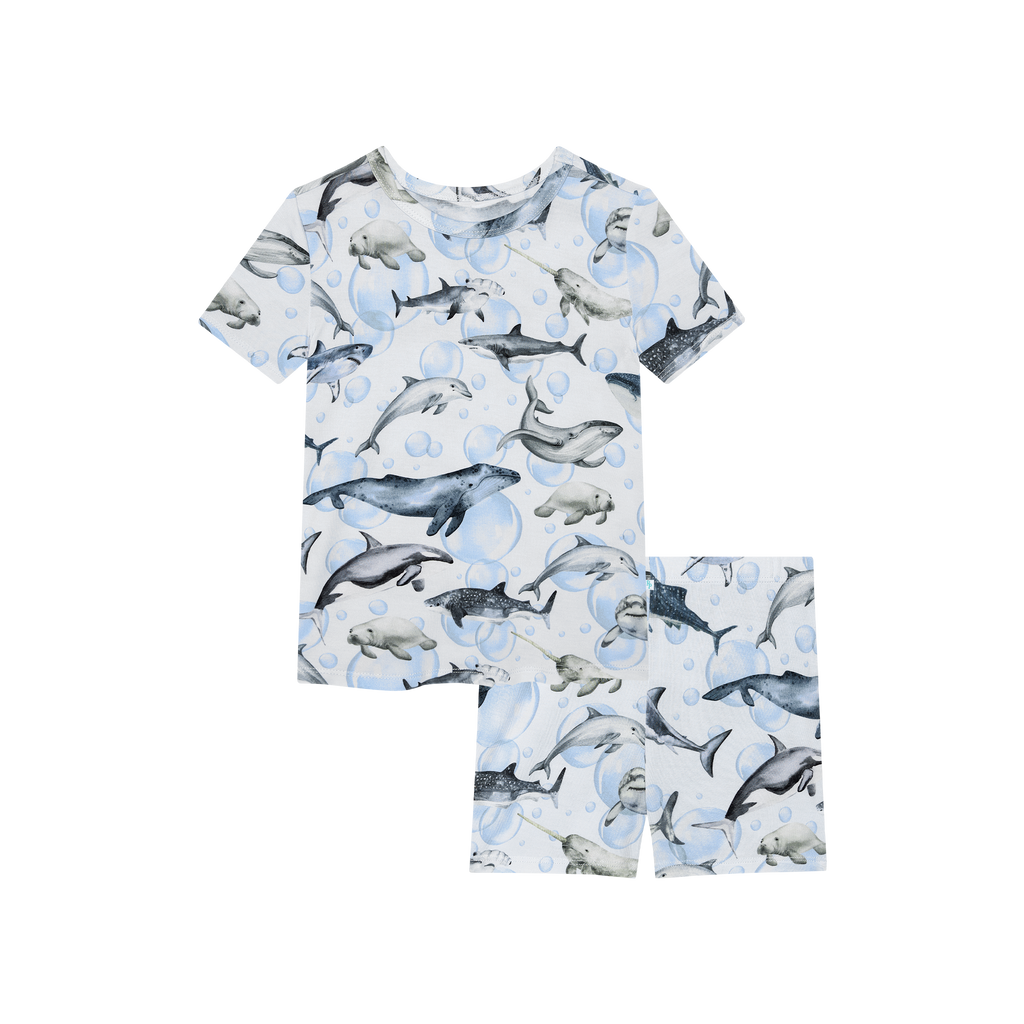 Posh Peanut Bamboo Kids S/S 2PC Basic Short Length PJ Lounge Set - Sharkly
