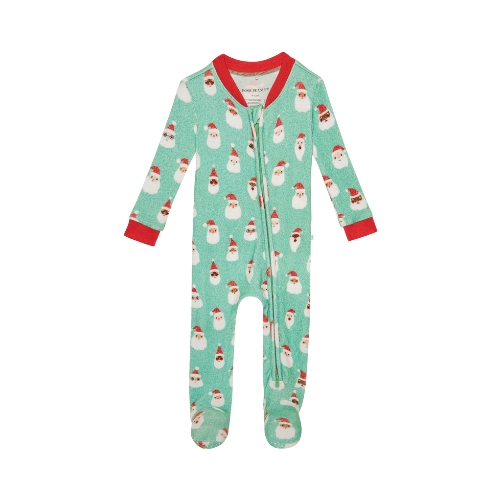 Posh Peanut Pacci Fleece Zippered One Piece Footie UNISEX - Santa Medley