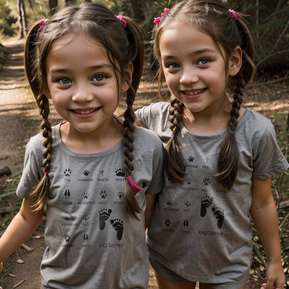 Barefoot S/S TShirt, UNISEX, Heather Grey, Woodland Animal Footprints