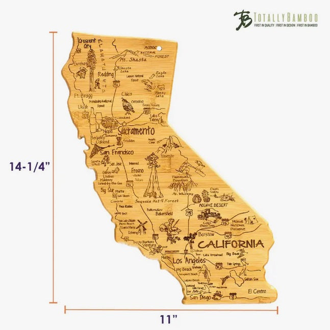 You can't beat the weather and abundance of fresh food in California! For the love of Farm to Fork to the sustainable bamboo, this California shaped bamboo cutting & serving board is an essential item for your own kitchen and makes a wonderful hostess gift or for anyone that loves food, to cook or entertain in your life.