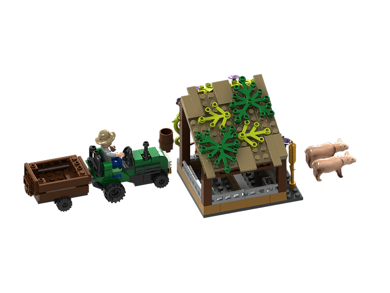 For the animal lovers and farm loving kids. A farmer, tracker, trailer, shed, and pigs. So much fun to build and play with this set afterwards.