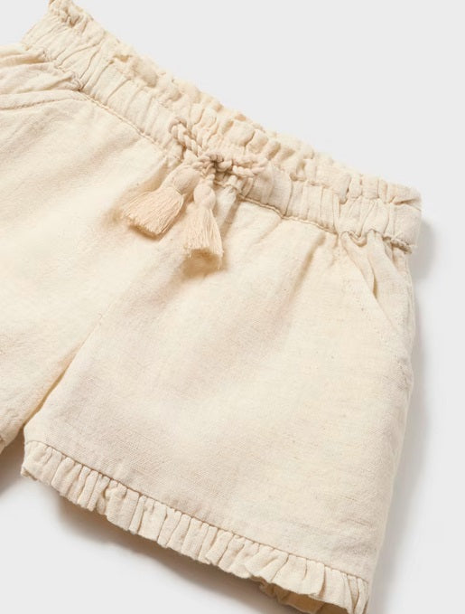 1212 Toddler Girls Cotton Linen Soft Shorts - Natural Chickpea
