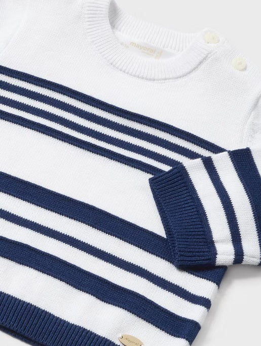 1378 Baby Boys Sustainable Cotton Knit Crewneck Sweater - Navy Stripe