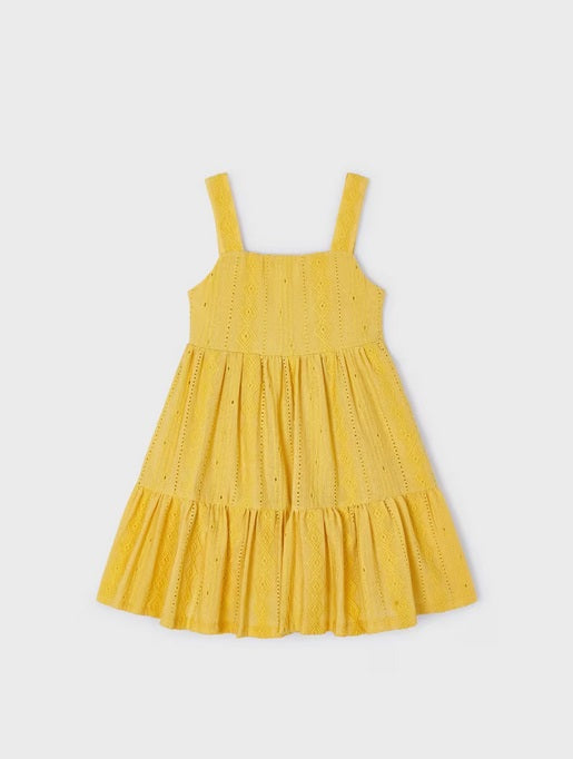 3950 Mini Girls Open Eyelet Lace Dress - Honey Mustard