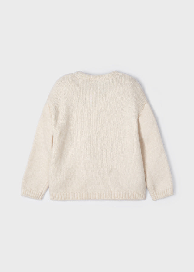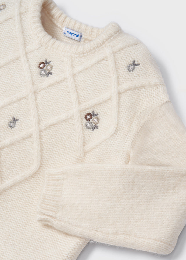 4302 Mayoral Girls Knitted Embroidered Sweater, Chickpea, Eco-Sustainable