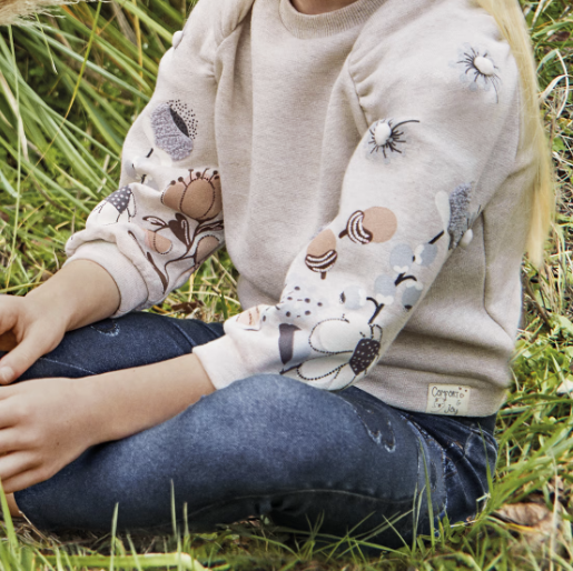 4403 Eco Embroidered Floral Puffy Sweatshirt - Stone/Pink