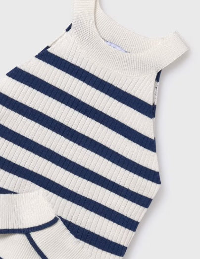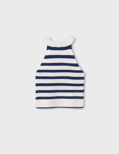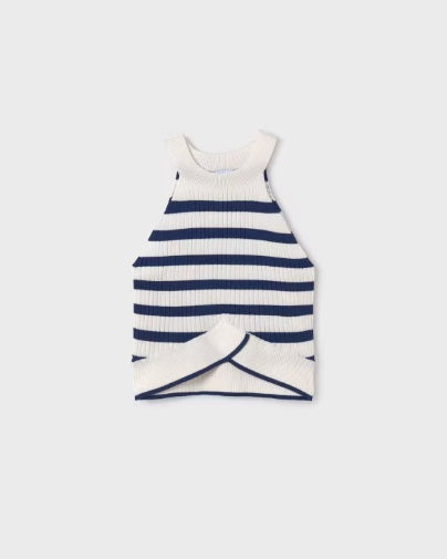 6023 Mayoral Tween/Teen Girls Lenzing Ecovero Viscose Knit Criss Cross Tank Top - Navy Striped