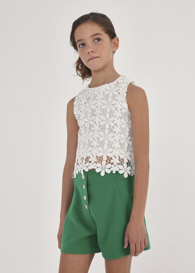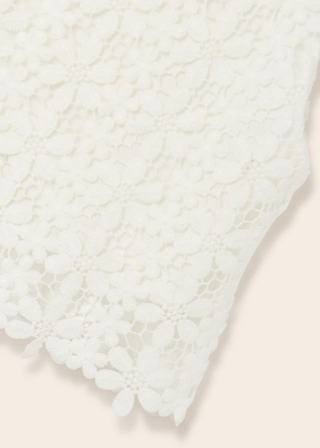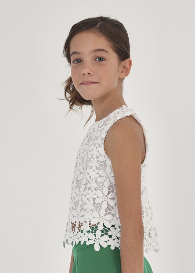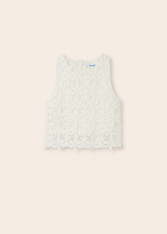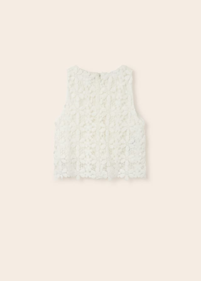 6064 Guipure Lace Sleeveless Cropped Top, White