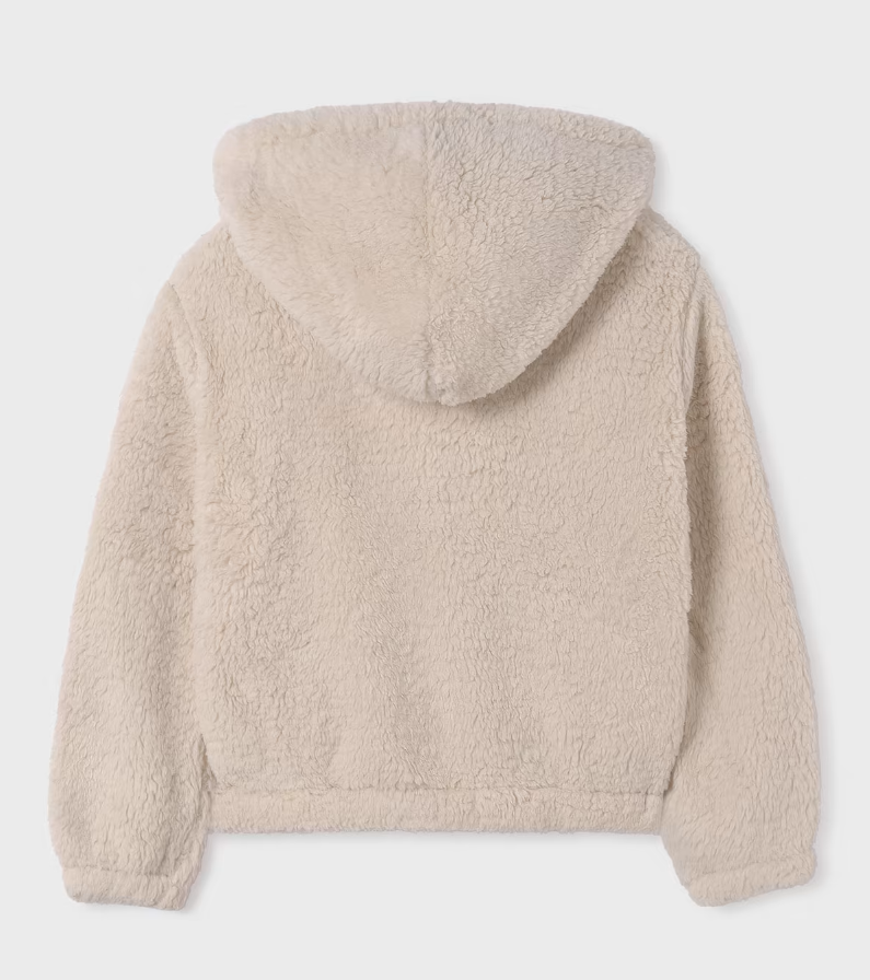 7419 Mayoral Tween/Teen Girls Faux Wool Plush Hooded Zippered Jacket - Chickpea