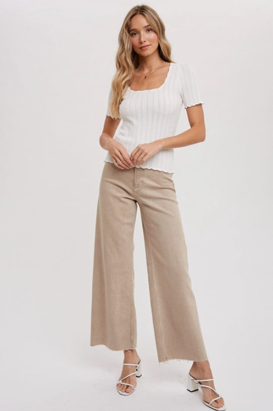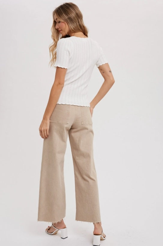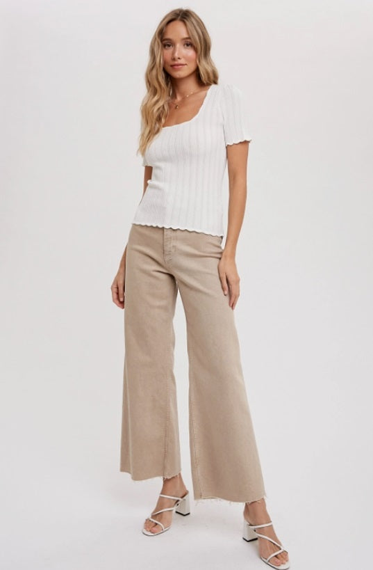 Blu Ivy Scalloped Hem S/S Knit Top, Ivory
