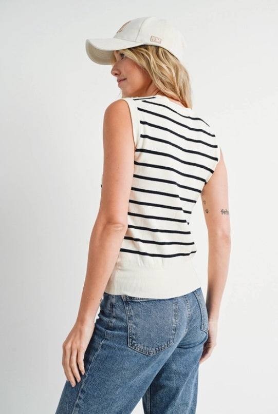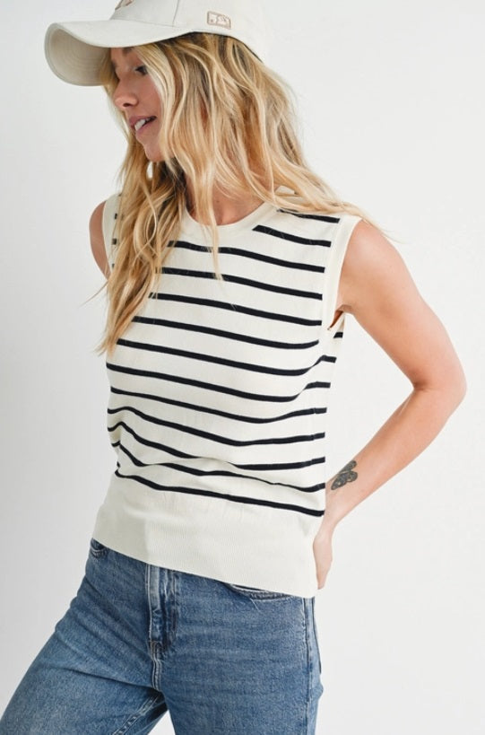 Blu Ivy Sleeveless Classic Striped Knit Tank, B/W