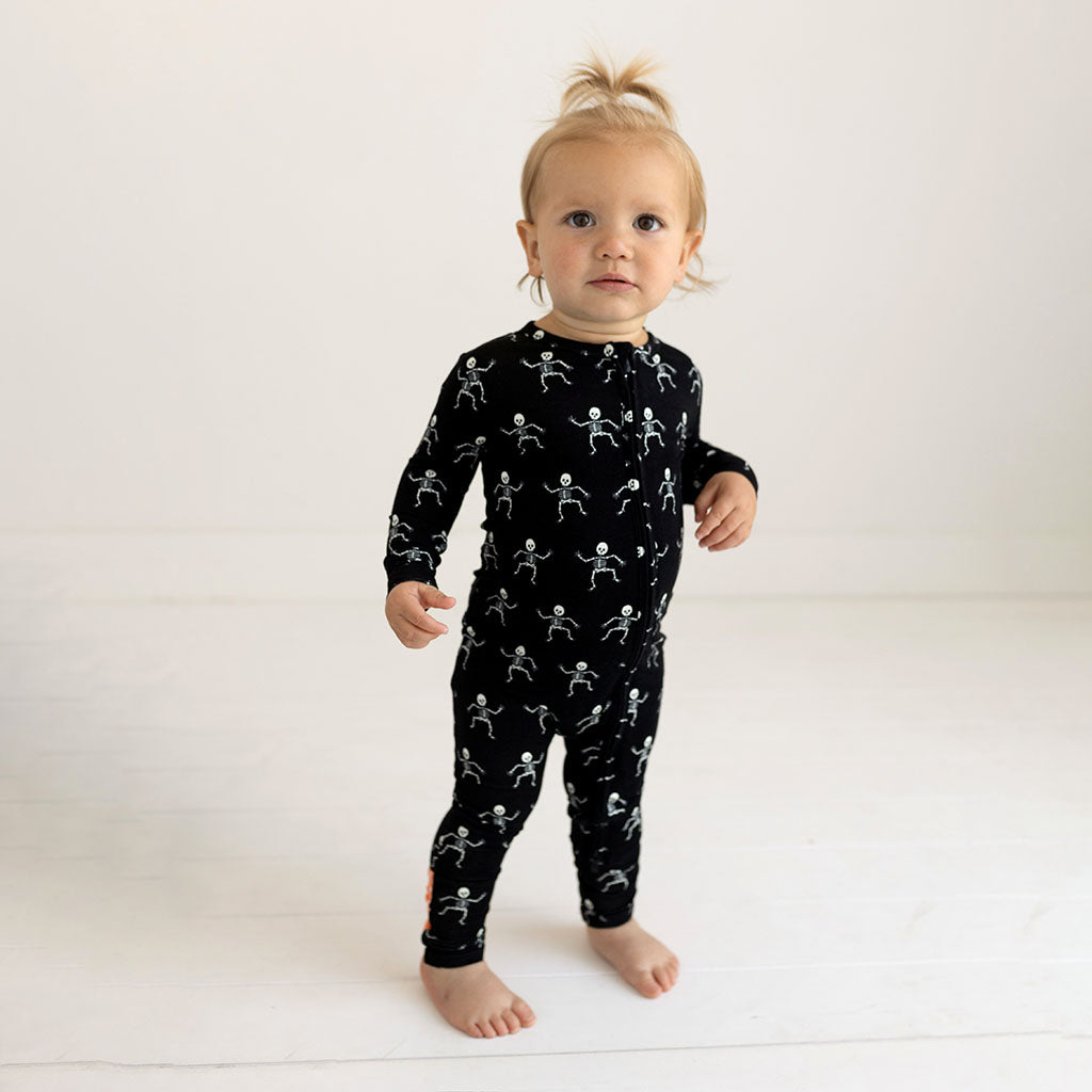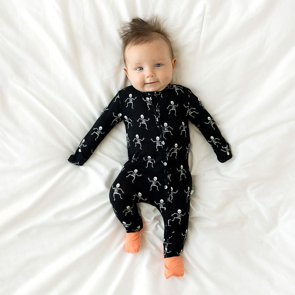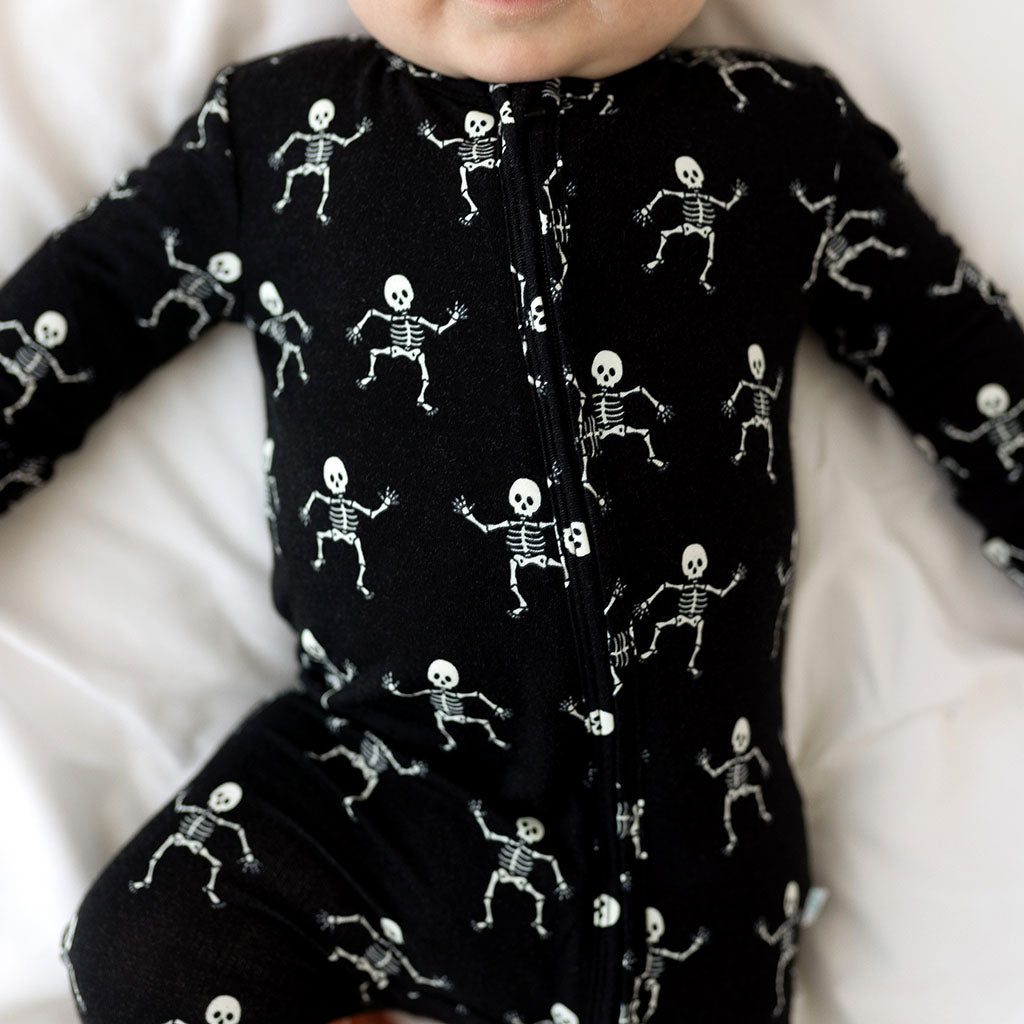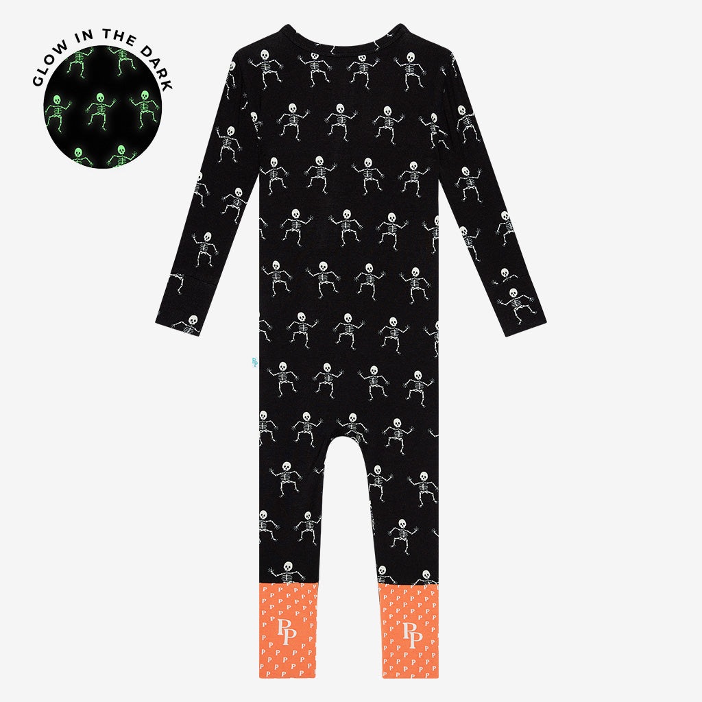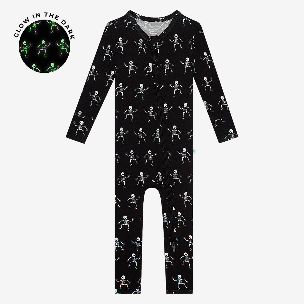 Posh Peanut Bamboo Convertible Zippered Onepiece Romper - UNISEX Dancing Skelly Skeleton Glow-in-the-Dark