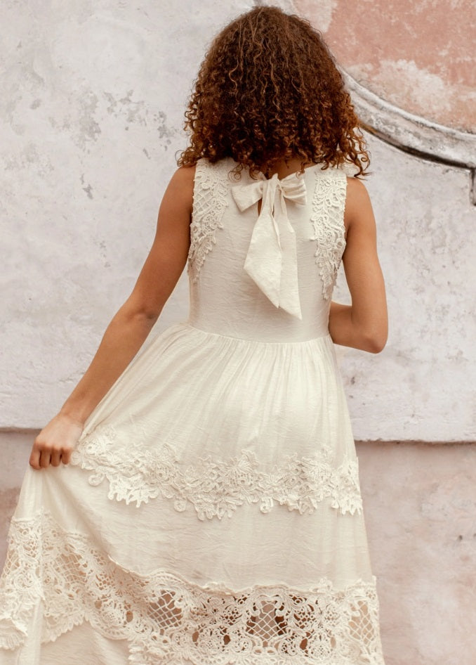 Joyfolie Vintage Guipure Maxi Dress, Bow Back, Gardenia White
