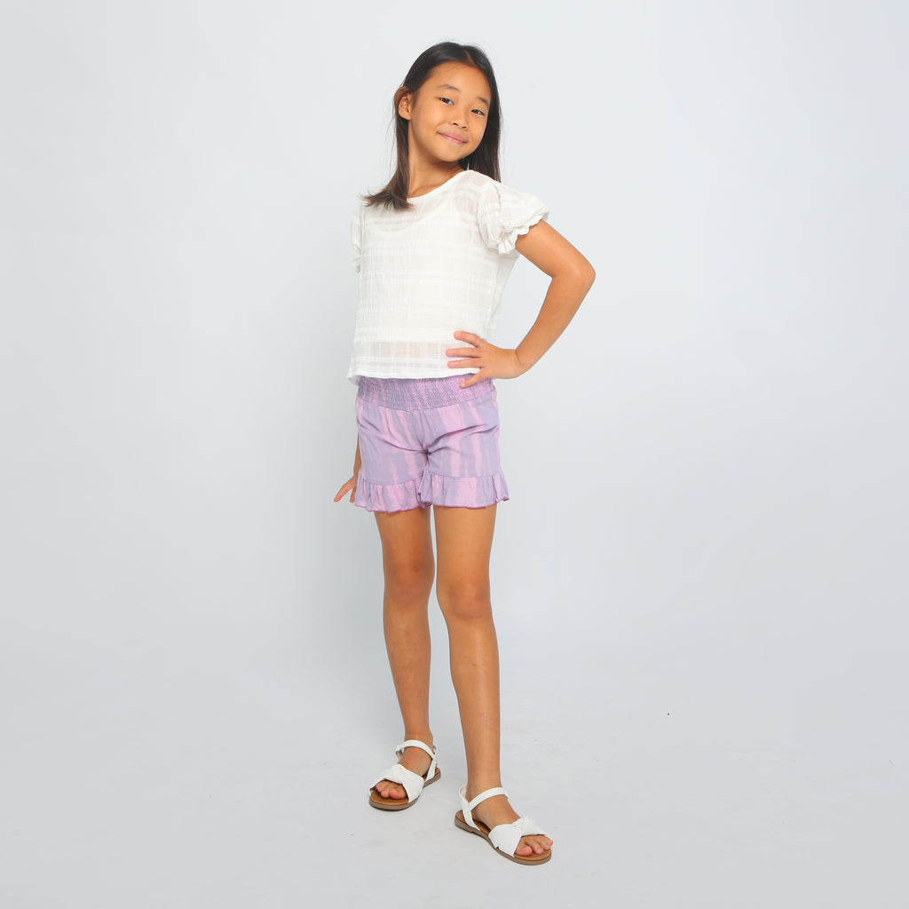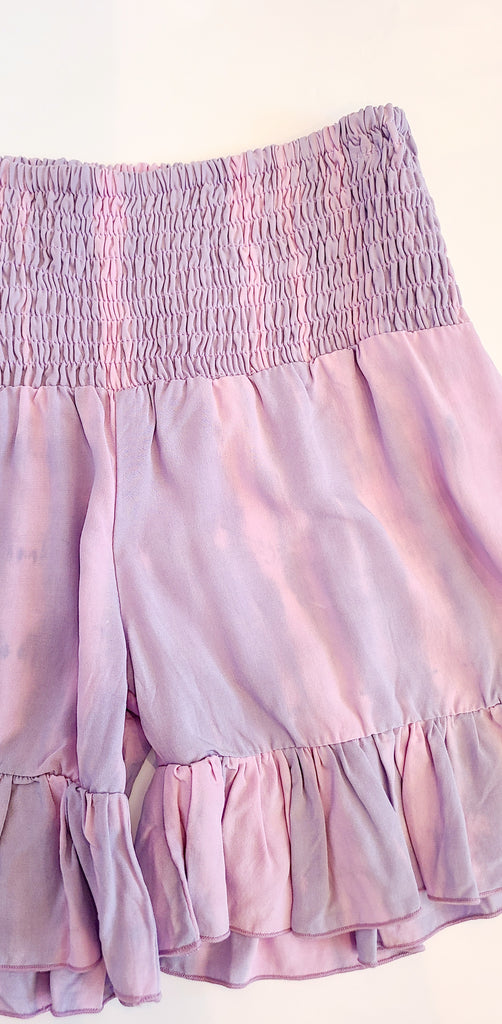 Joyous Ruched Waist London Ruffled Short - Purple Watercolor