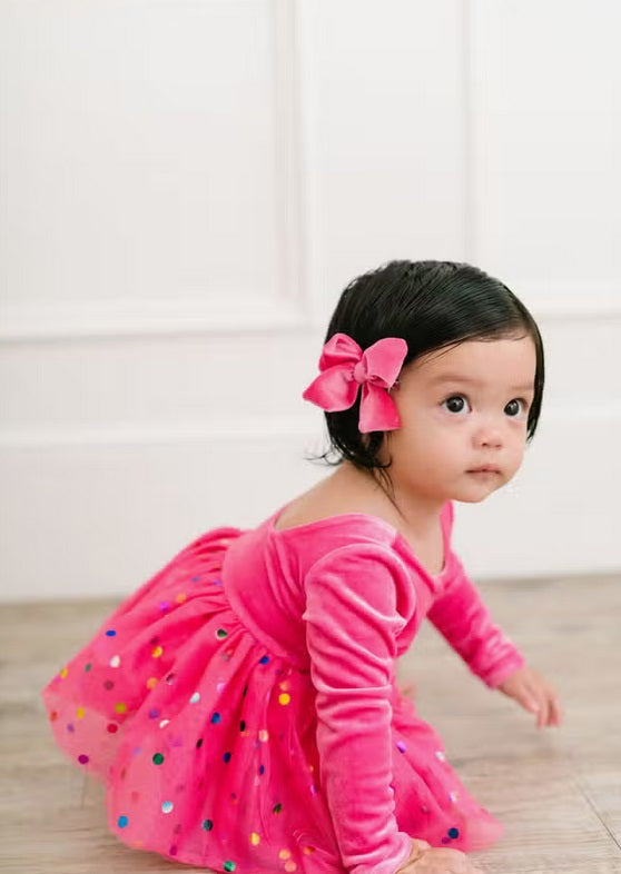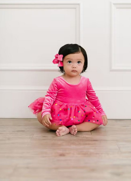Ollie Jay Velvet & Confetti Tulle Ballet Back Bodysuit Dress - Hot Pink