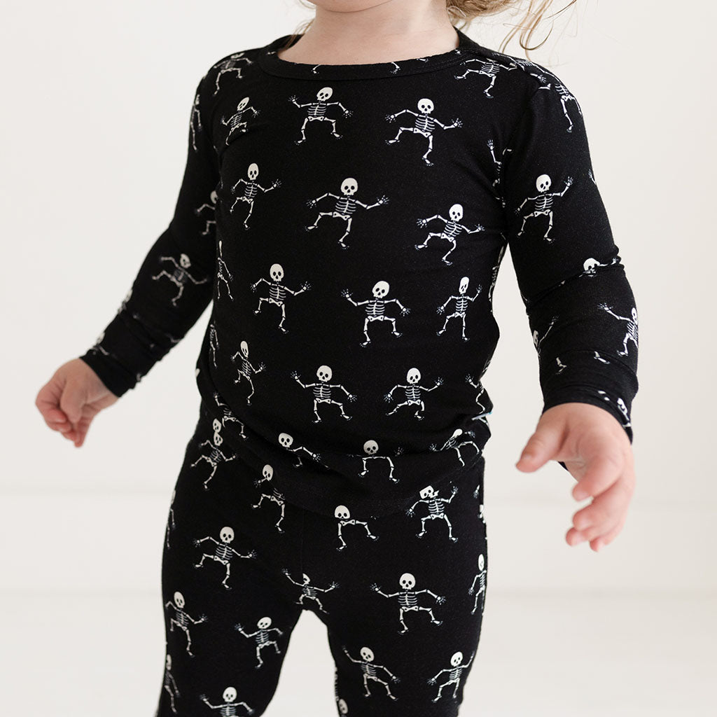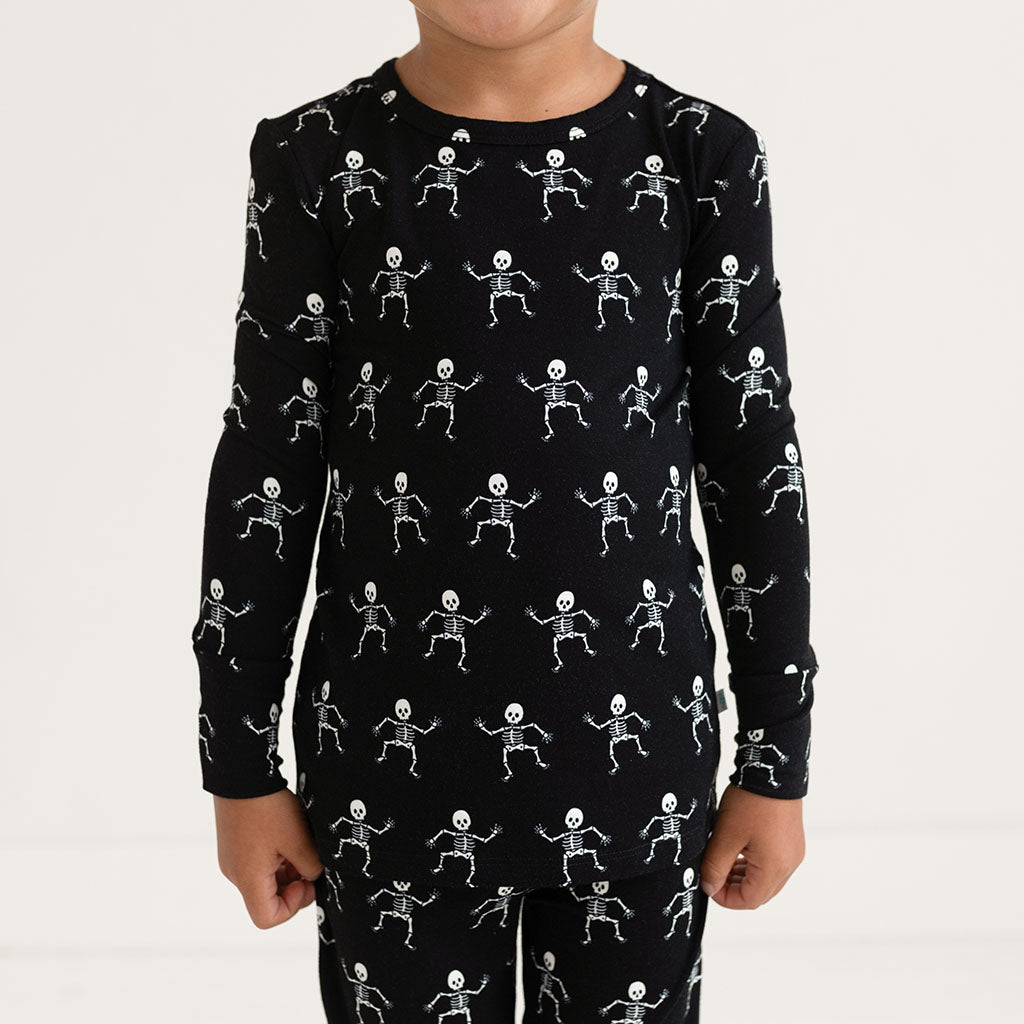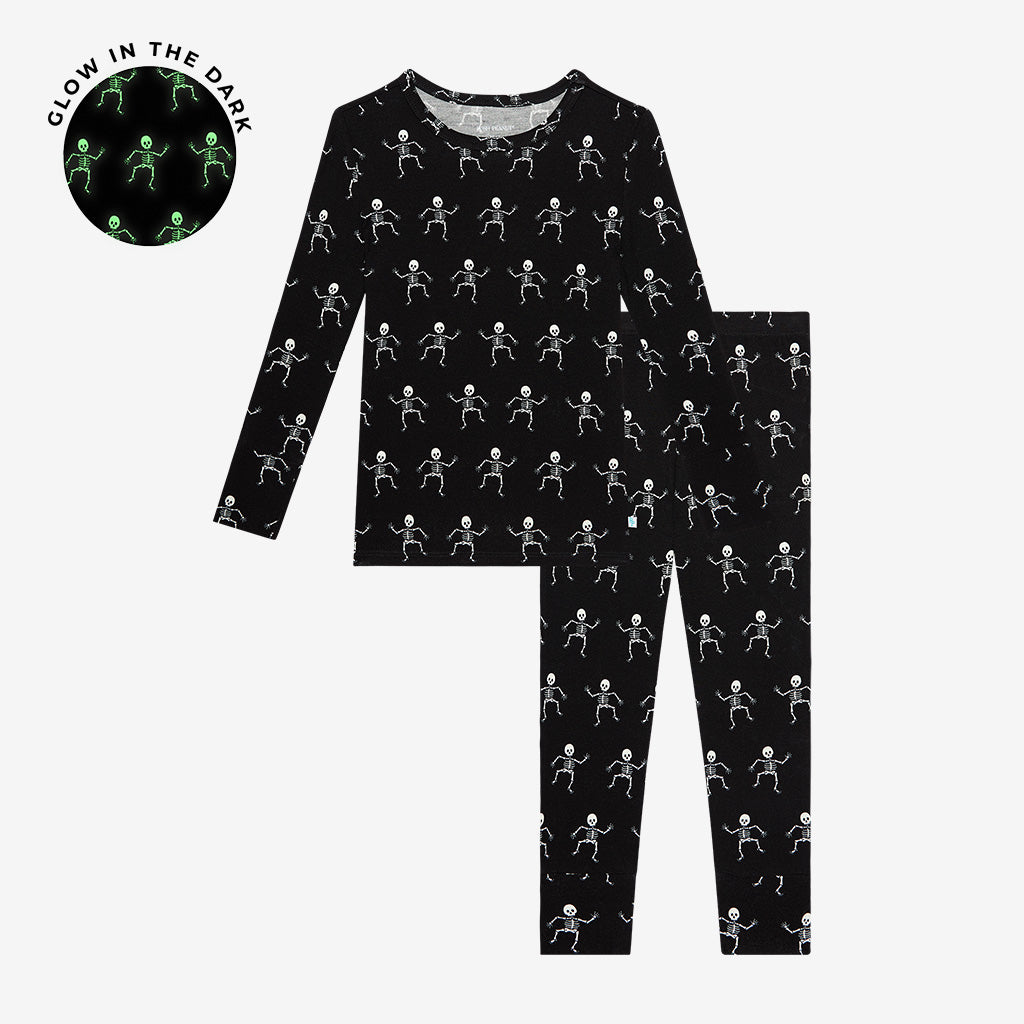 Posh Peanut Bamboo Kids L/S 2PC Basic PJ Lounge Set - UNISEX Dancing Skelly Skeleton Glow-in-the-Dark