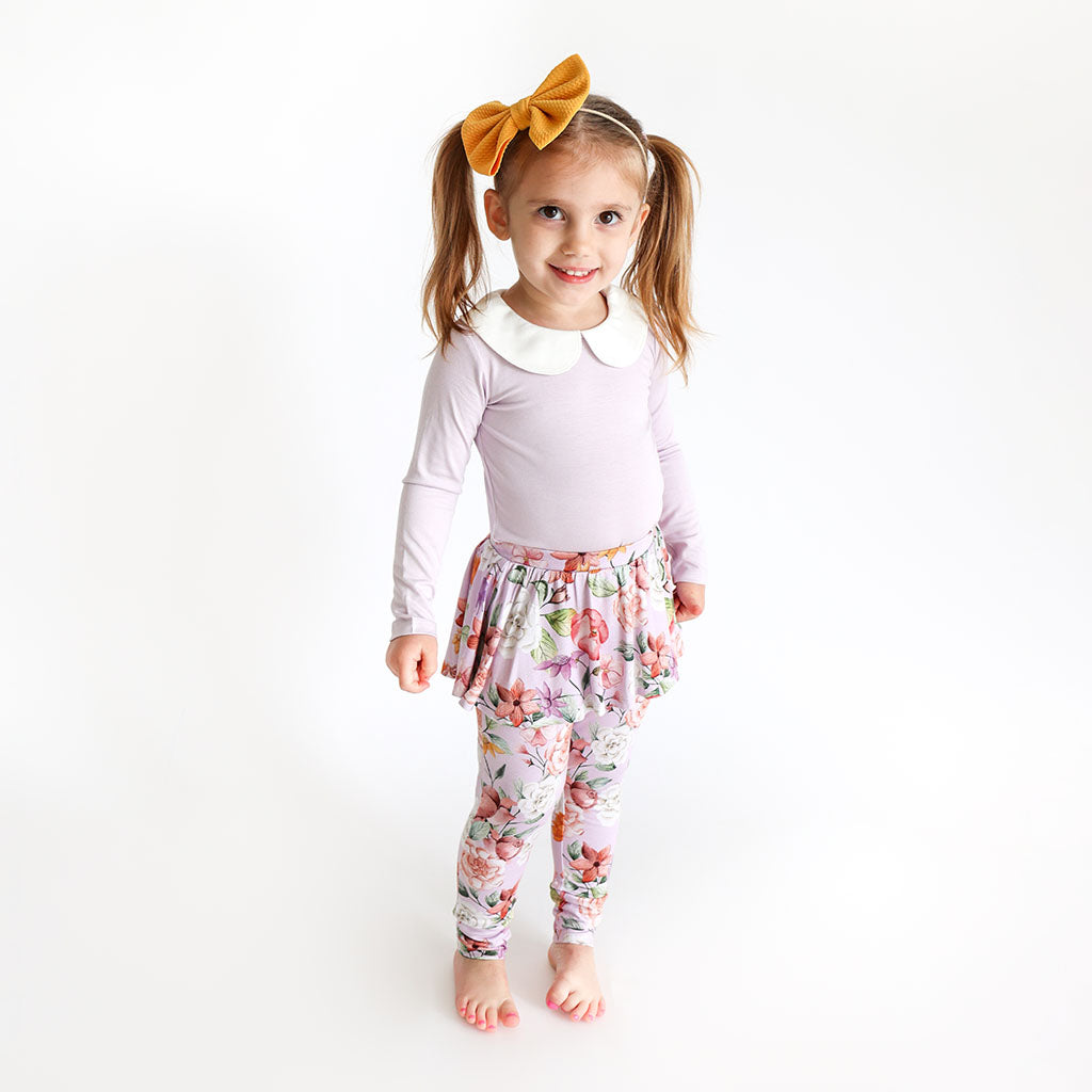 Posh Peanut Bamboo L/S 2PC Peter Pan Collar T-Shirt & Skirted Leggings Set - Pari