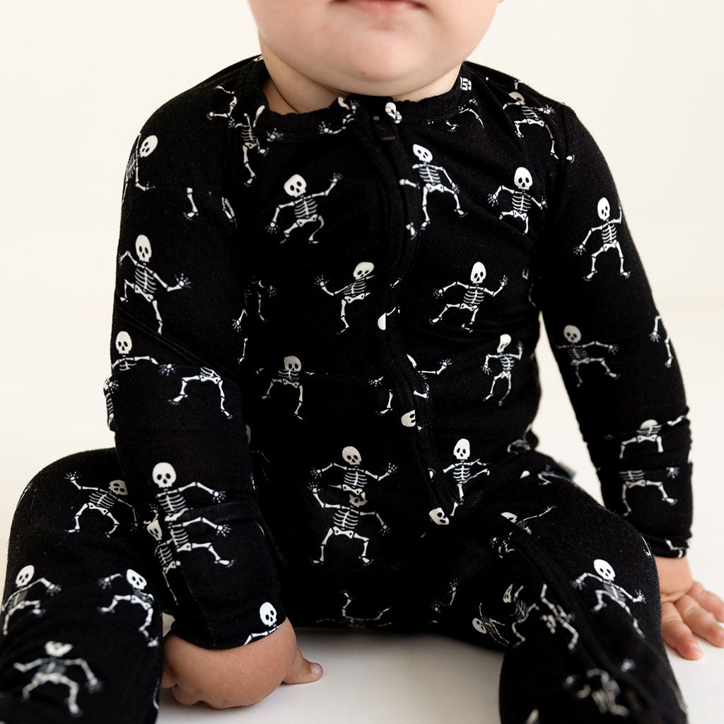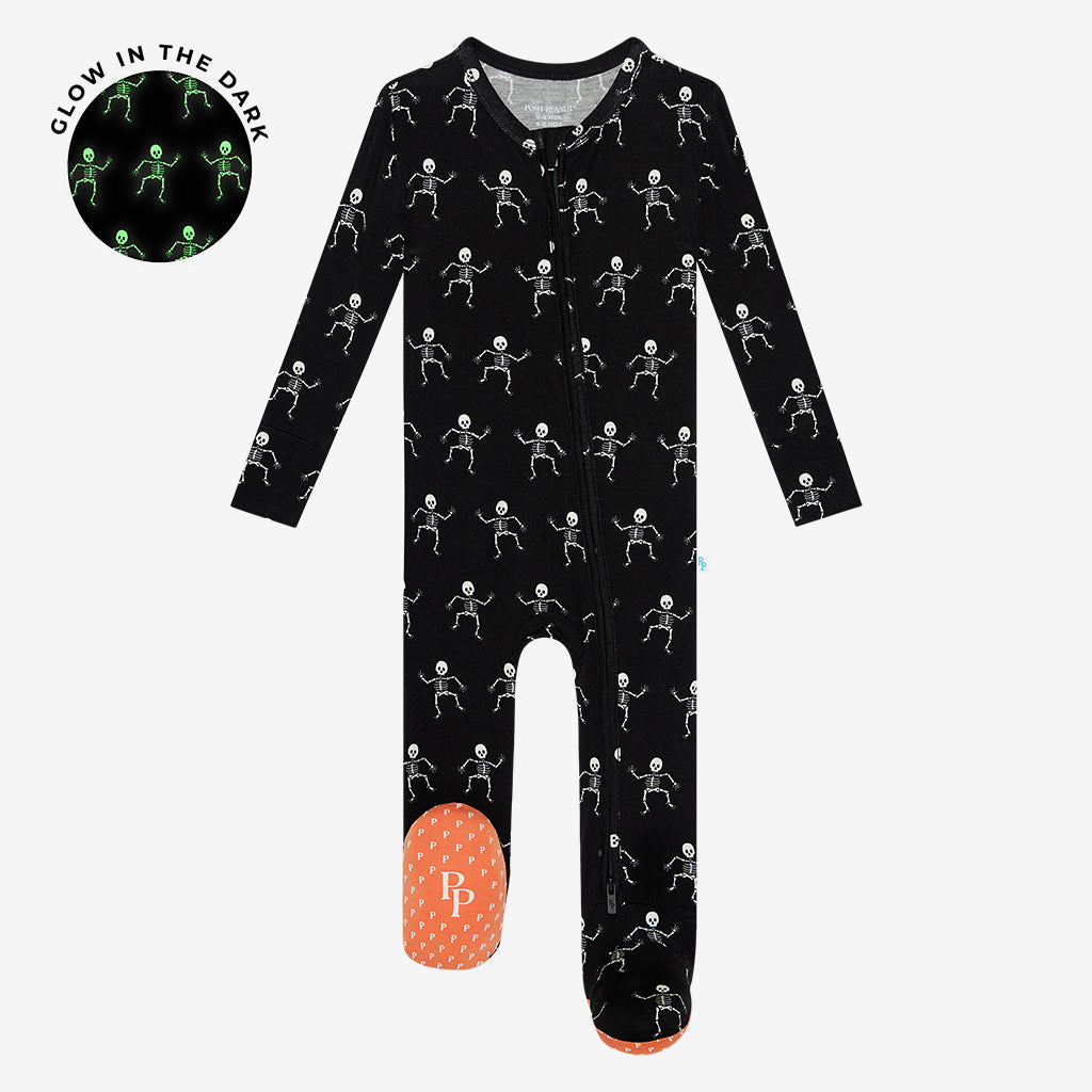 Posh Peanut Bamboo Zippered Footie - UNISEX Dancing Skelly Skeleton Glow-in-the-Dark