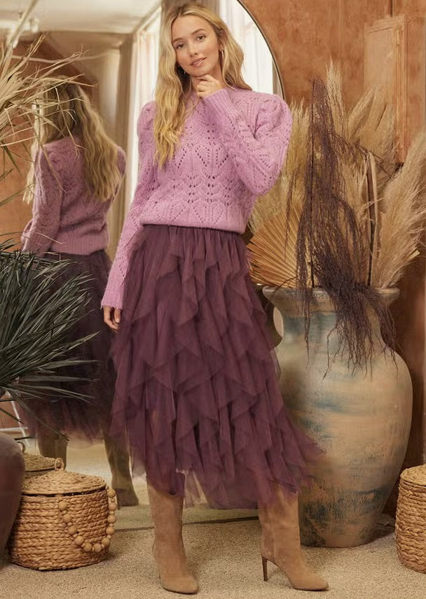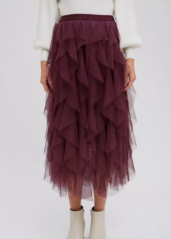 Women's/Junior Spiral Midi Tulle Skirt - Plum