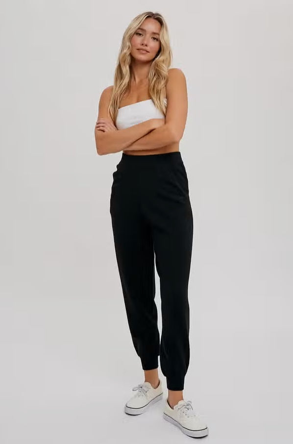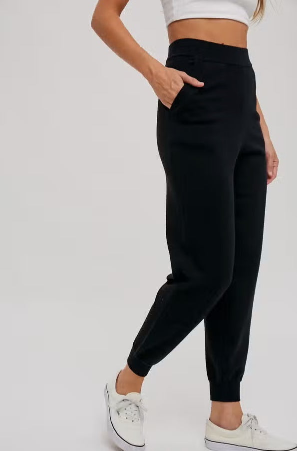 Women's/Junior Sweater Knit Jogger Pants - Black
