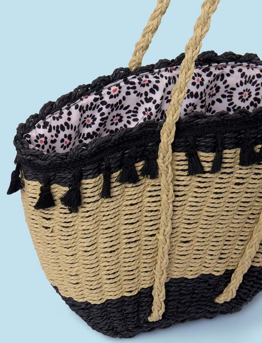 10748 Mayoral Raffia Market Tote Shoulder Bag - Black/Natural