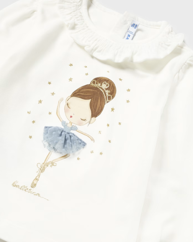2006 Mayoral Toddler Girls L/S 3D Ballerina Shirt - Natural & Blue