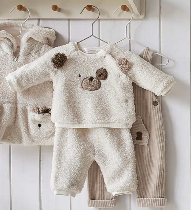 2514 Mayoral Baby UNISEX Sherpa 2PC Jogger Set - Natural Teddy Bear