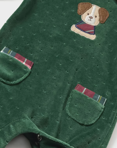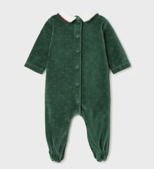 2748 Mayoral Baby Boys Sustainable Cotton Velour Footie, Pine Puppy
