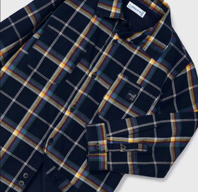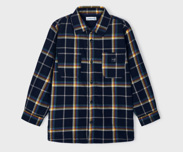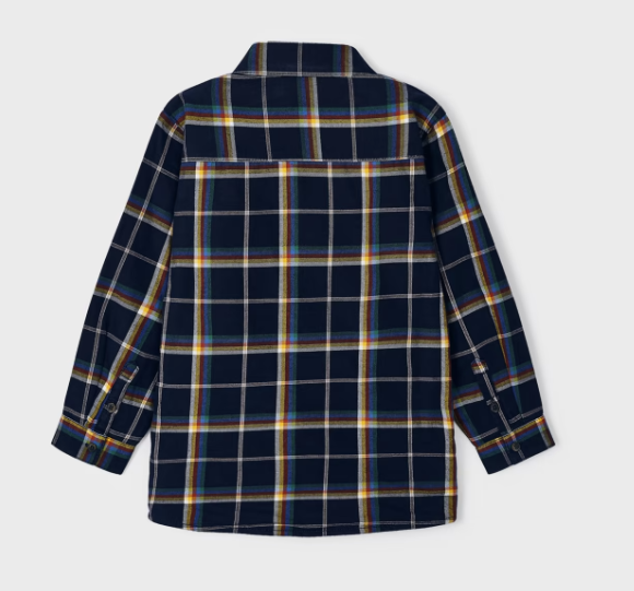 4107 Mayoral Mini Boys Button Up Plaid Shacket - Navy