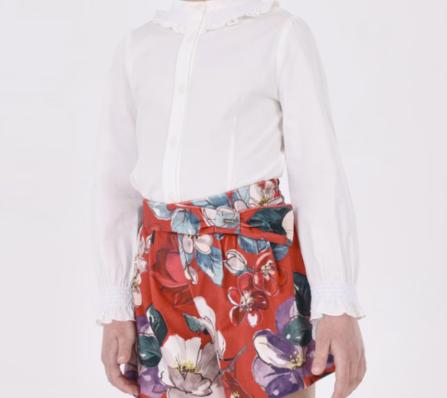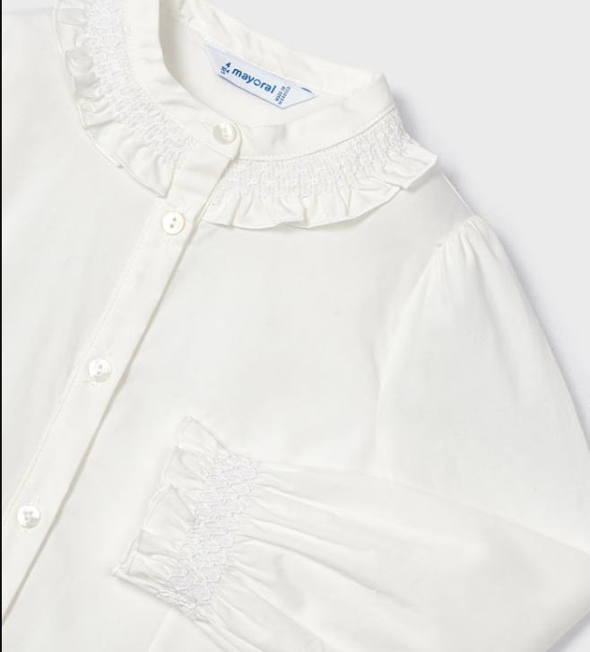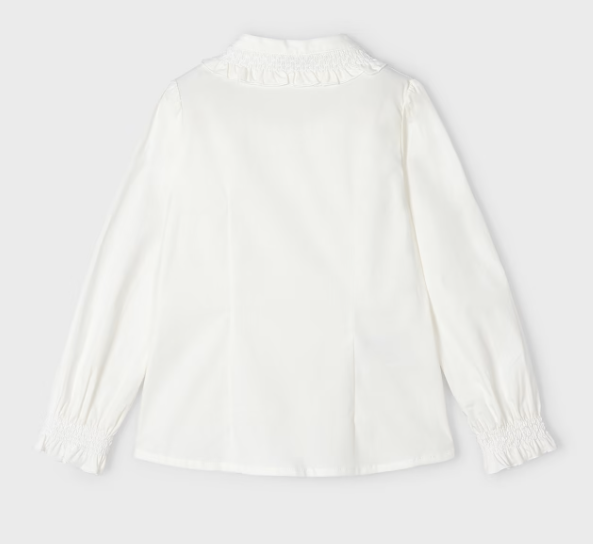 4195 Mayoral Mini Girls L/S Ruffle Collar Poplin Button Up Dress Shirt - Natural White