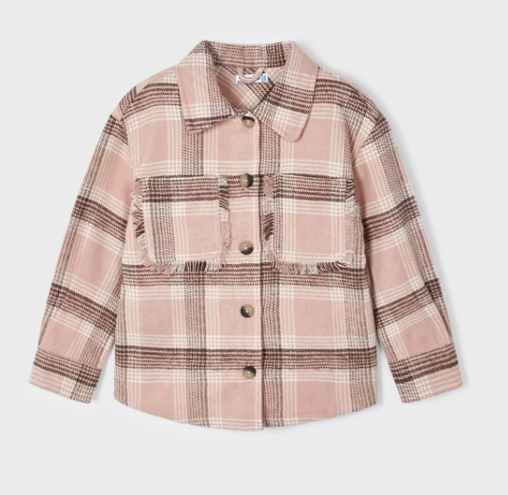 4198 Mayoral Mini Girls Plaid Shacket - Pink