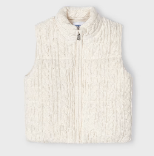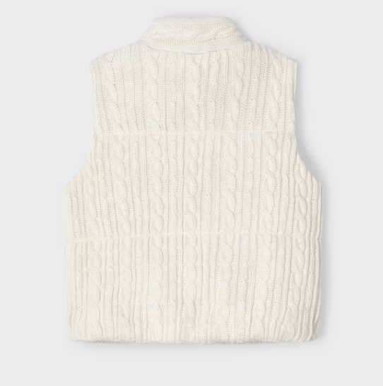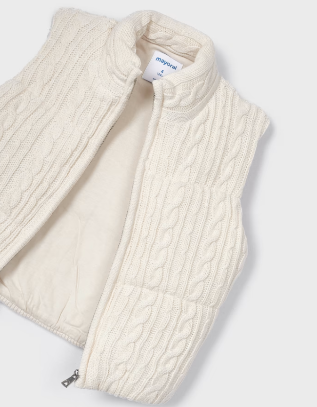 4314 Mayoral Mini Girls Cable Knit Zippered Padded Vest - Chickpea White