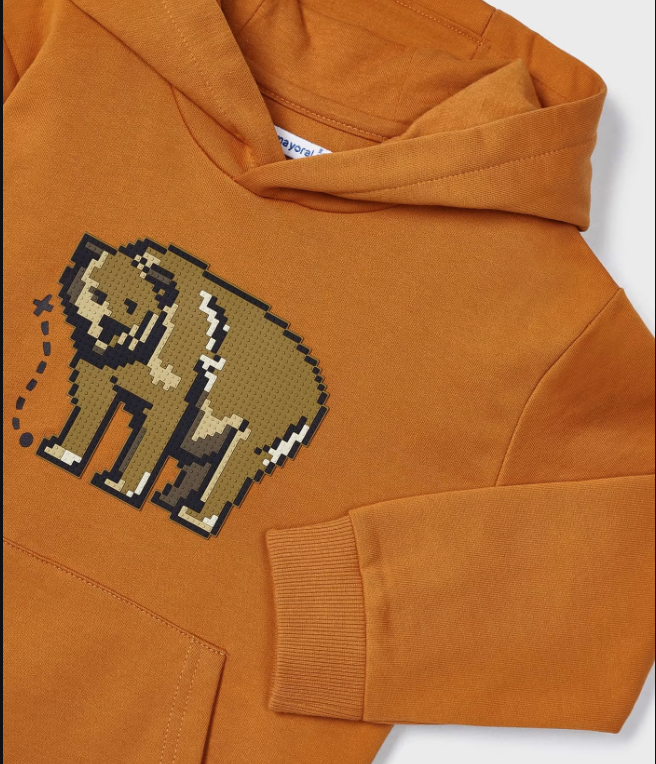 4422 Mayoral Mini Boys Rubber Bear Applique Hooded Sweatshirt - Saffron