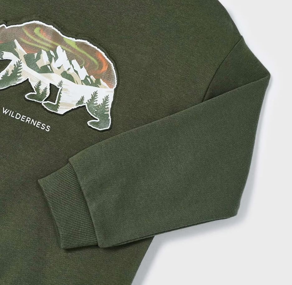 4429 Mayoral Mini Boys Embossed Wilderness Bear Sweatshirt - Forest Green
