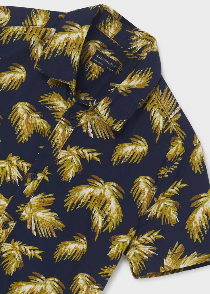 6112 Mayoral Jr Boys S/S Collared Shirt, Palm Tree Navy