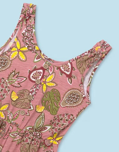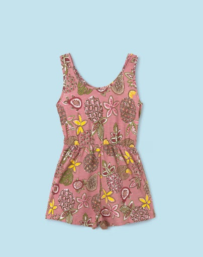 6860 Mayoral Tween/Teen Girls Sustainable Printed Romper, Pineapple Rose Floral