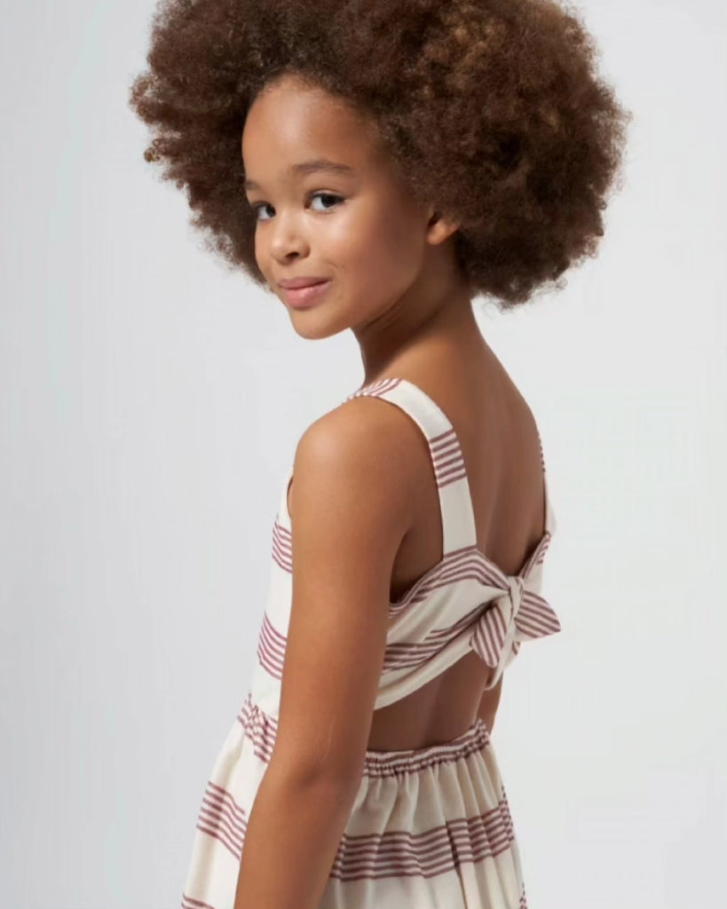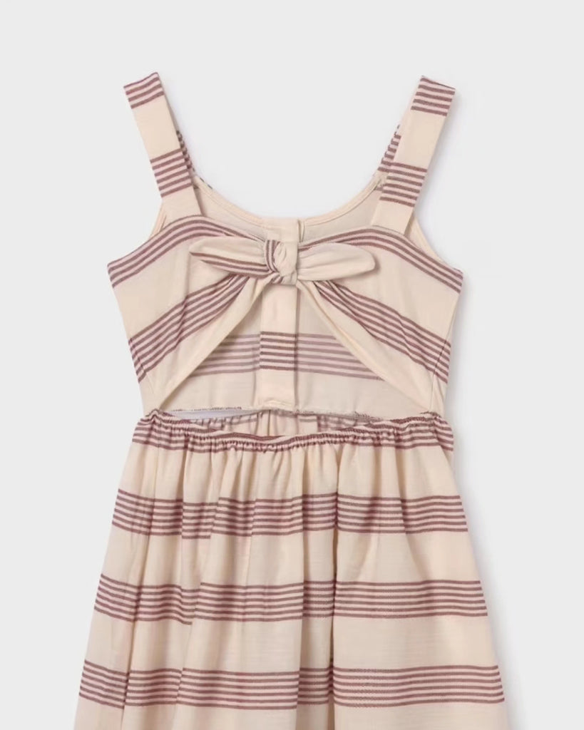 6957 Mayoral Tween/Teen Girls Striped Pique Dress, Peek-a-Boo Back - Terracota