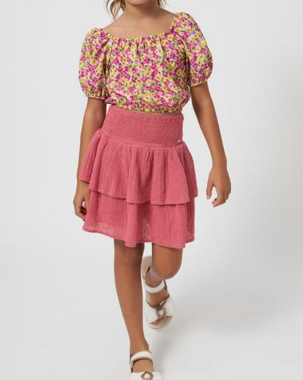 6970 Mayoral Tween/Teen Girls Sustainable Cotton Tiered Skirt - Watermelon Blush