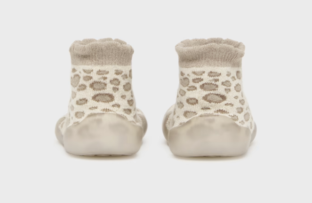 Your little one will look adorable in these milk leopard print sock shoes. Non-slip rubber soles for little kids who are just learning to walk. Includes decorative elements such as decorative stars. Super soft and comfortable socks your baby will not want to take off. Feels like a sock but grips and provides support like a shoe so they can learn to walk, run, and play all day in comfort.