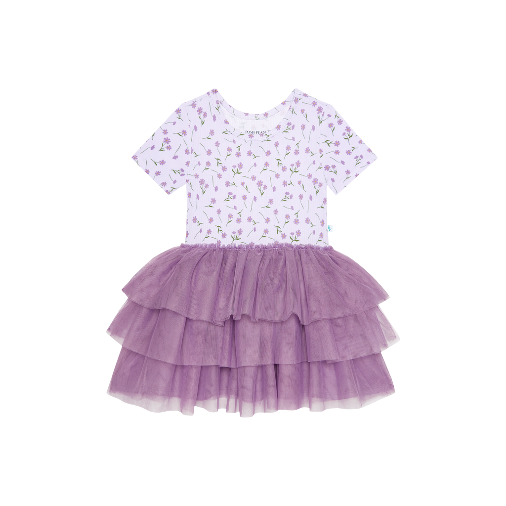 Posh Peanut Bamboo Ribbed S/S Tulle Twirl Dress - Jeanette Lavender Micro Floral
