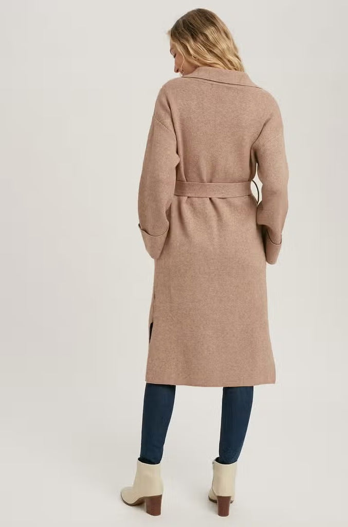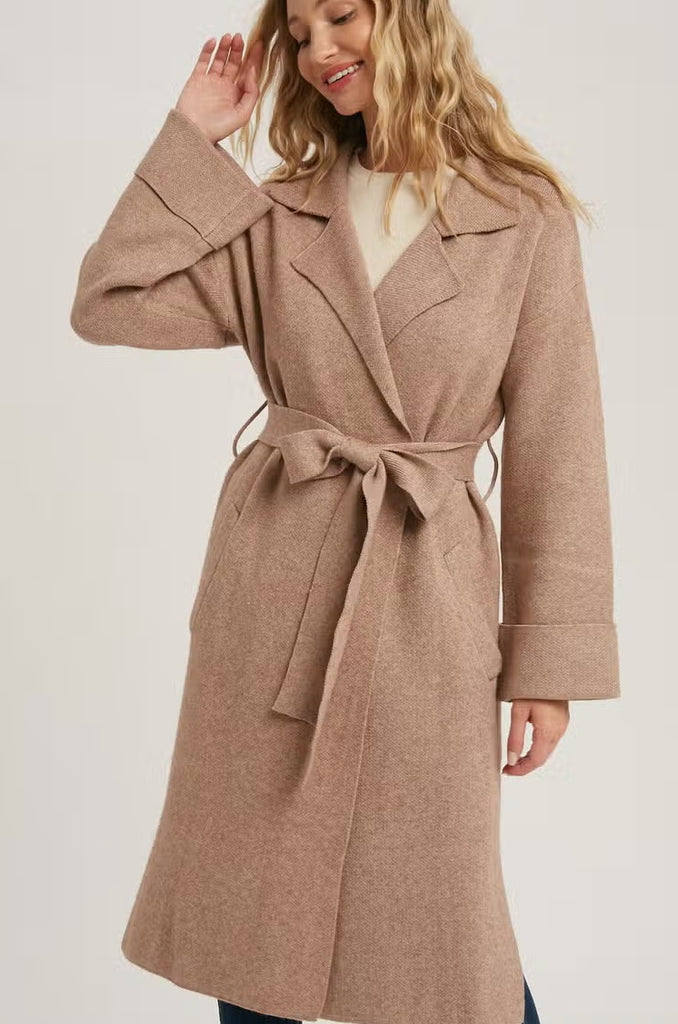 Women's Effortless Classic Knitted Trench Coat - Latte